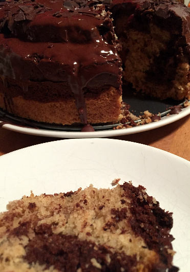 Den dunklen Teig ebenfalls in die Kuchenform geben.